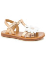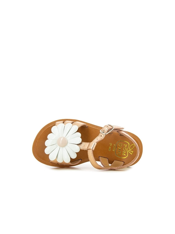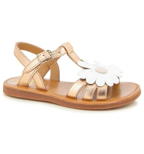Cette sandale pour enfants est présentée dans une version en cuir métallisé cuivré, avec un empiècement fleur sur les brides. Cette chaussure souple et légère est conçue avec des matériaux de qualité pour le bon développement du pied. Elle s'ajuste facilement à la cheville grâce à sa boucle réglable