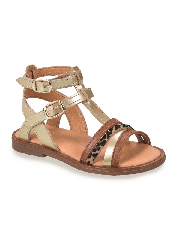 Modèle de sandale GBB PAISIBLE, entièrement cuir, facile à enfiler et à ajuster grace à sa fermeture par deux velcros fausse boucle, semelle souple.