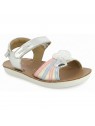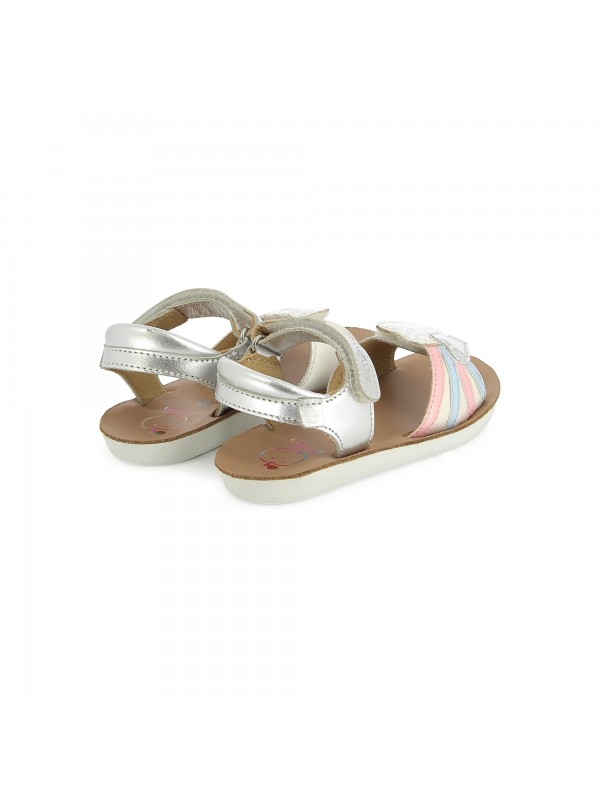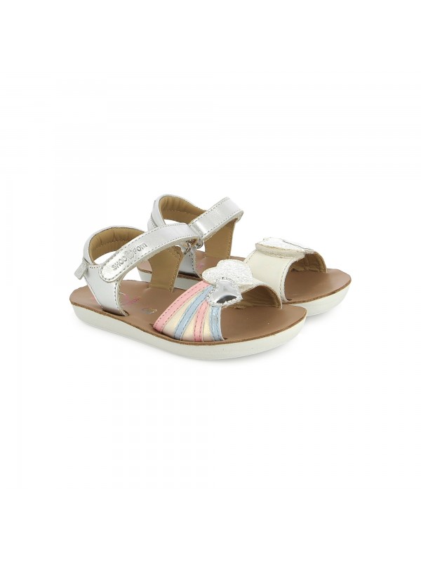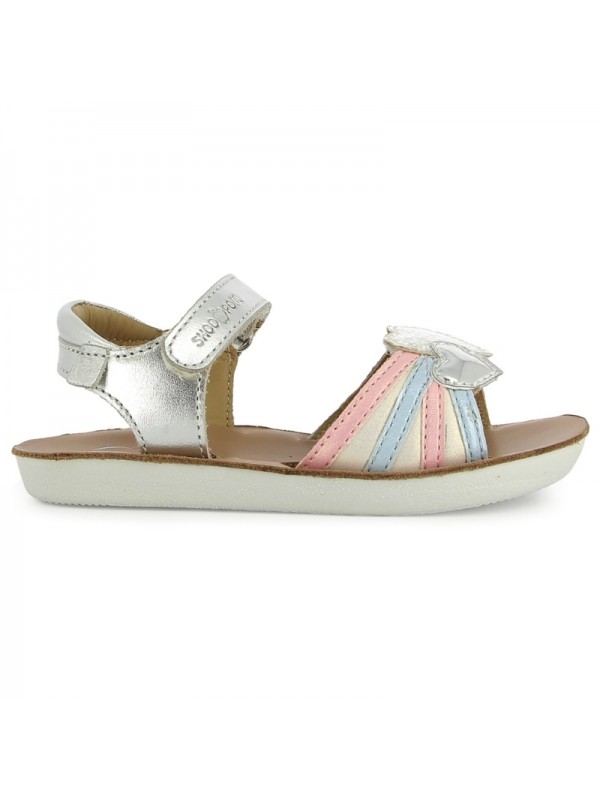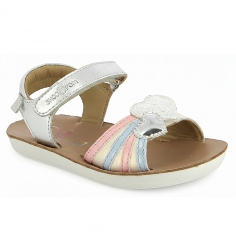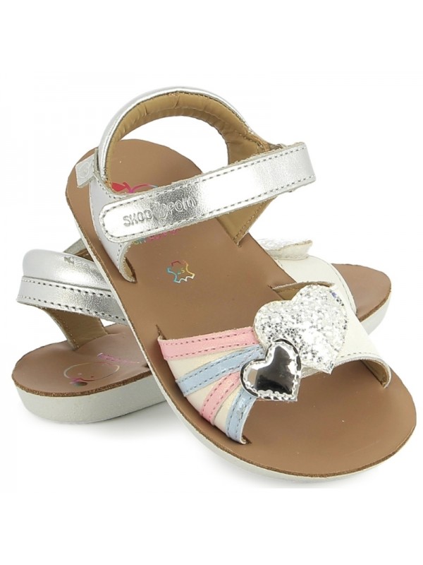 Cette sandale en cuir pour enfants est un indispensable de la saison estivale. Sa semelle extérieure est résistante, légère et souple. Sur la bride avant, son empiècement cœur métallisé et imprimé a été personnalisé en interne. Pratique à chausser, cette chaussure est dotée d’une bride à scratch à la cheville ainsi que d’une bride avant, également réglable par scratch. Pensée et développée avec expertise par notre bureau d’études en Vendée, cette chaussure réunit qualité, confort et savoir-faire Shoo Pom.