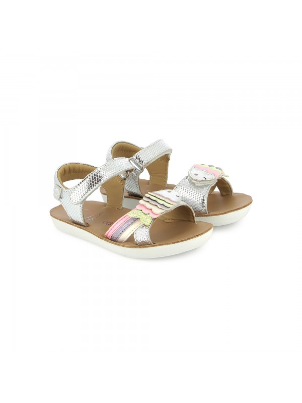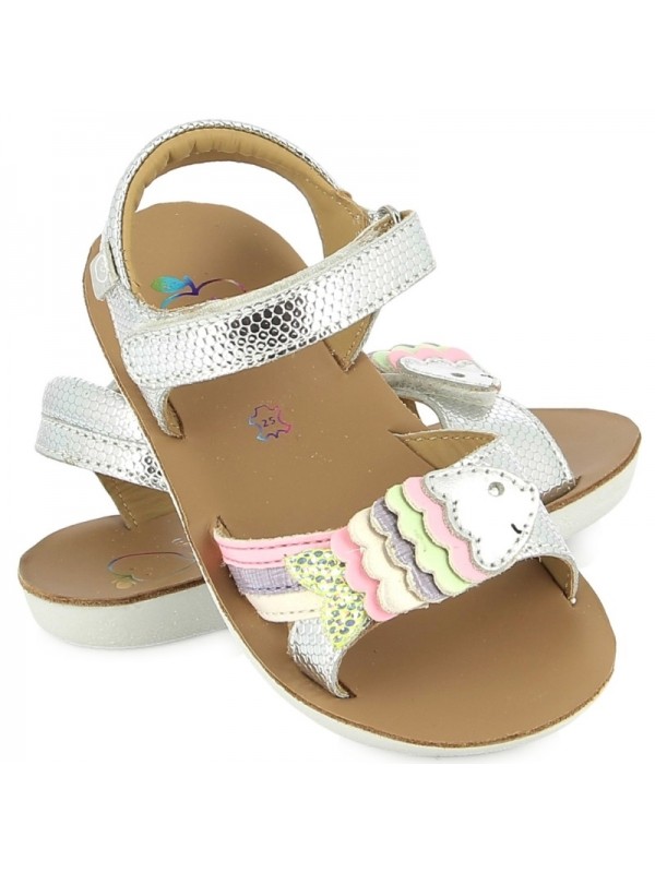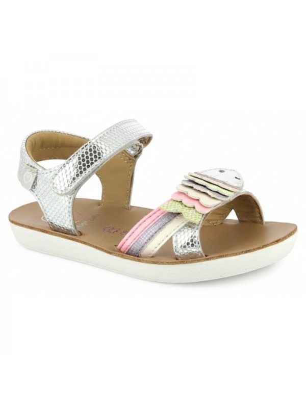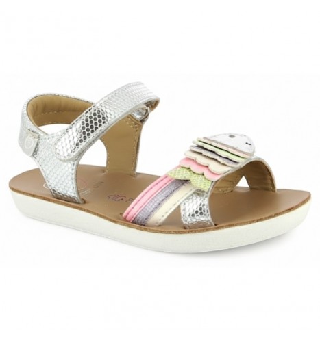 Cette sandale pour enfants est présentée dans une version en cuir effet serpent argenté, avec un empiècement poisson. Cette chaussure souple et légère est conçue avec des matériaux de qualité pour le bon développement du pied. Elle se chausse et se déchausse facilement grâce à son scratch.
