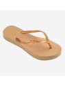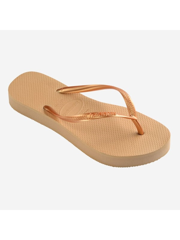 Les sandales Havaianas Slim Flatform gardent un design « Slim » avec des lanières fines mais offrent une plateforme disponible dans différentes couleurs. Idéales pour une tenue basique ou avec des pièces plus voyantes.